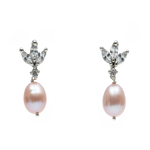 Alloy Tops Grey Pearl Studs White Polish Cz T4311